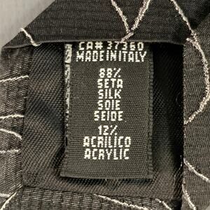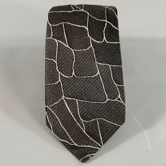 EMPORIO ARMANI necktie in a black silk featuring a grey acrylic textured design and skinny style.