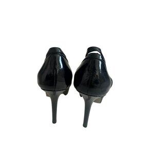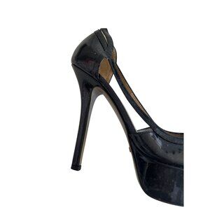 Sleek and stylish, these Emporio Armani black patent platform heels feature a sophisticated design perfect for any occasion. Crafted with attention to detail, they offer comfort and elegance.