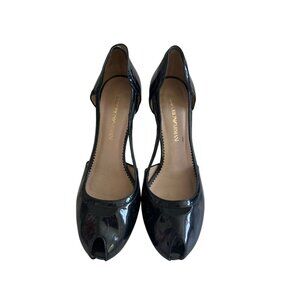 EMPORIO ARMANI Black Patent Platform Heels Size 37.5