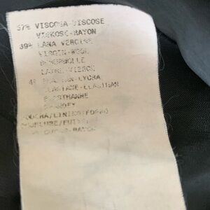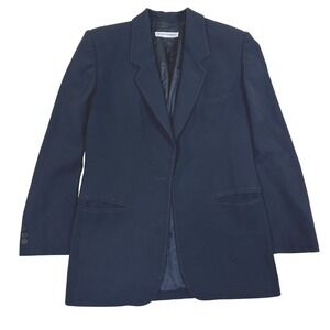 EMPORIO ARMANI Black tailored blazer jacket, single breasted, 2 buttons, side seam pockets, fully lined, structured shoulders; classic understated silhouette. Fabric: 57% viscose, 39% virgin wool, 4% lycra.
