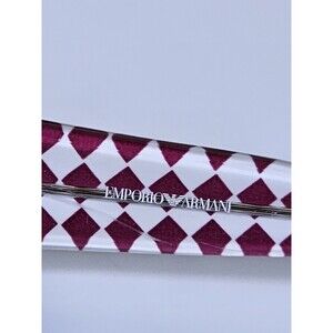 EMPORIO ARMANI RIMMED WHITE WRAP SUNGLASSES EA 9243/S CVBLF 61-16 115. These are used and have minor wear. There is a bit of bite mark on the end of one of the arm bottom it's not bad but noticeable. Other than that, the frames are in great condition.