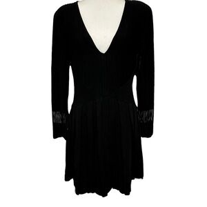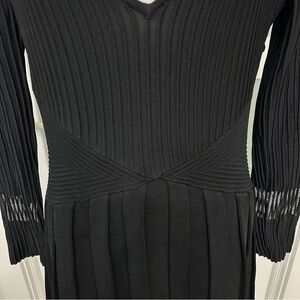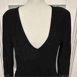 EMPORIO ARMANI Ribbed Ottoman Knit V Neck Mini Dress Black SZ 44/US 8 EUC