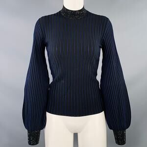 EMPORIO ARMANI Size S Black Navy Viscose Blend Stripe Mock Neck Dress Top