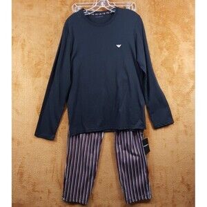 EMPORIO ARMANI Sleepwear Mens Medium Black Stripe Pajama PJs Set Cotton $155