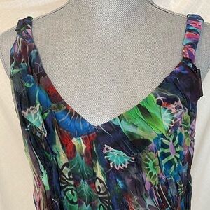 EMPORIO Armani Blue Green Multicolored Floral Print Sleeveless Dress Size 44 New