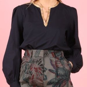 Le Sirenuse Positano's breezy blue cotton blouse has a geometrically embroidered contrast collar. The cuffs are slim-fitting, which adds smartness to its floaty silhouette. Style yours with one of the brand's maxi skirts and a woven bag.