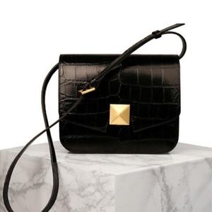 - Square bag with logo-engraved gold stud embellishment on the front side