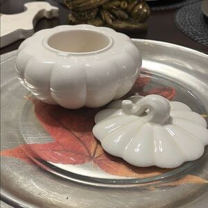 Originally held a 2in Pumpkin Pecan Waffles candle, this adorable ceramic pumpkin with lid is a great addition to your Thanksgiving table. The ceramic pumpkin with lid is empty.