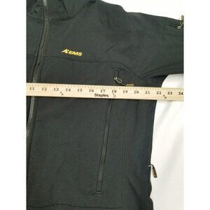 This EMS Black Full Zip Hiking Outdoors Athletic Jacket is perfect for adventure-seeking women. Made by EASTERN MOUNTAIN SPORTS, it's a size large, black, softshell jacket designed for active outdoor use.