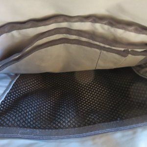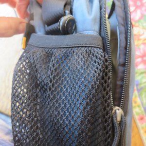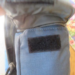 10 1/2" tall, 9" wide, 4" deep. Adj. padded shoulder strap. Backside has a deep open pouch. Under flap there is a deep wide open pouch, behind that a zippered section with a deep open mesh compartment as well as three open deep compartments, good for cell phone-also 3 pen holders. The main section is large with a zippered top. There are two side sections, one mesh for bottles, other velcro. Very nice bag. The fabric is water repellent.