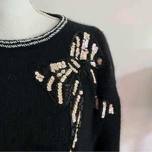 EMT • Vintage Black Angora Wool Beaded Bow Sweater