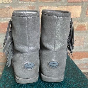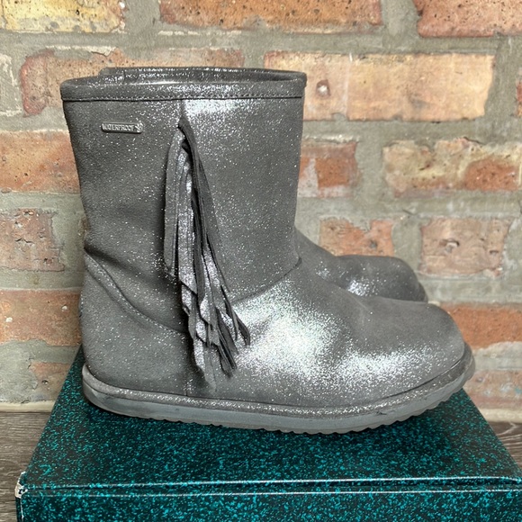 Used condition EMU Brumby Metallic Tassel - Kids, Waterproof metallic suede 100% Australian Merino Wool lining 100% Australian Merino Wool lined footbed