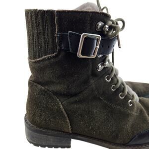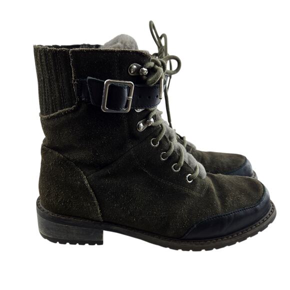 EMU Australia Boots Women 8 Waldron Green Suede Waterproof Moto Combat Shearling