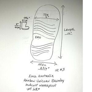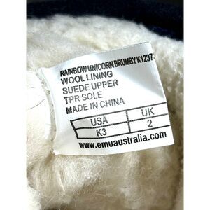 EMU Australia Girls Boots Sz K3 Rainbow Unicorn Brumby Mid-calf serpa lining Waterproof. Suede upper with Wool Sewoorpa Lining Preowned, excellent condition, clean without tears, stains or fading.