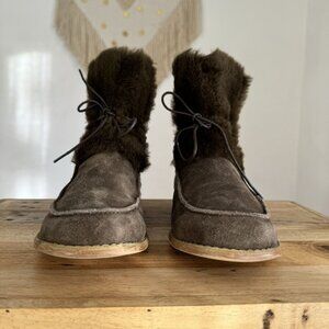 EMU Australia Harvey Brown Suede Lace Up Shearling front Flat Ankle Boots Size 9