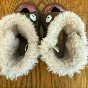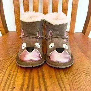 EMU Australia Kanga Walker Leather Boots Mocha Shearling Pink Size 24-30 Months