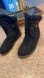 EMU Australia Black Suede Upper Embroidered Boots WITH FLAWS. Tag says Size US W-F8/M-H7 UK 6 EUR 39. Merino Wool Lined. I believe the style is called Belah Lo. These have been worn and have flaws but should still have some life left in them. PLEASE NOTE- There are CRACKS / SPLITS in areas on the upper soles but it doesn’t appear to go all the way through but I could be wrong. There may be other imperfections since they are used and aren’t new. They are dirty and have some rocks in the soles but I did sanitize them. They snap closed. Pricing low and Firm with FLAWS/ Imperfections in mind. Colors may be off because of lighting.