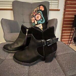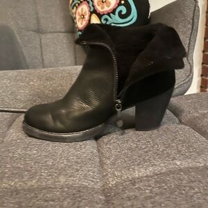 EMU Australia black leather/suede bootie with shearling lining with side zipper