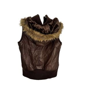 EMU Australian Sheepskin Leather Ladies Vest Dark Brown Fur trim Size Large