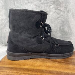 EMU Boots Mens 12 Black Suede Australian Sheepskin Lined Wallabee Style Juc Lo