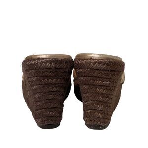 E Made In Italy Leather Jute Platform Wedge Sandals Rose Gold Size 39 8