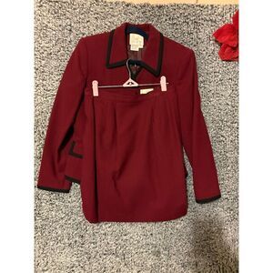 EN AVANCE Women's 2-Piece Skirt Suit Size 8 Burgundy Black Trim Formal