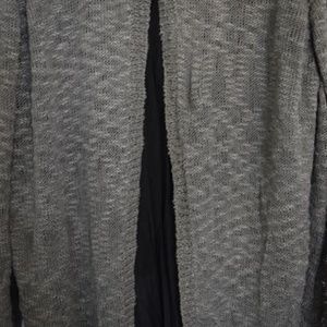 FIT AND STYLE: Scoop neckline cardigan, gray Pleated knit sweater that features a back opening. The lightweight knit fabric is semi-sheer so pair with a basic black cami and black jeans for a refreshing look. Fits like an oversized sweater.