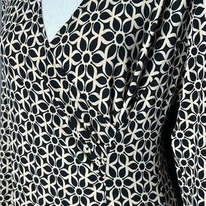 EN FOCUS CREAM AND BLACK LONG SLEEVED FAUX WRAP DRESS SIZE 12