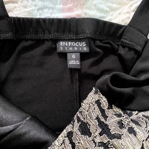 EN FOCUS STUDIO Above the Knee Black Pencil Dress with Straps