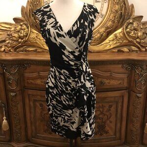EN FOCUS. Size 4P Dress. Ruching and Front Cascading Ruffle. V Neck. B17