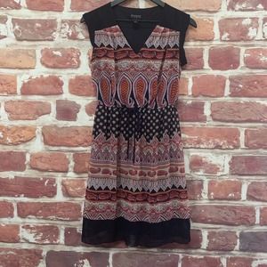 ▪️Women’s dress. V neckline, pullover, Bohemian style paisley pattern, elasticized tie waistline, lining, and short sleeves. Pre-owned. Wear it with your favorite flats or heels!