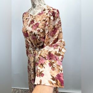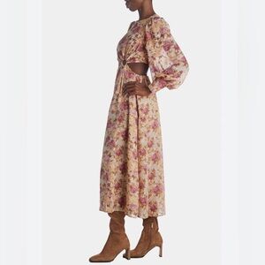 Beige and pink floral Boho balloon sleeve waist cutout maxi dress from EN SAISON, size M. Stunning dress, NWT.