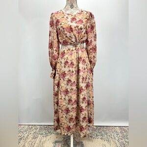 EN SAISON Beige and pink floral Boho cutout balloon sleeve maxi dress size M