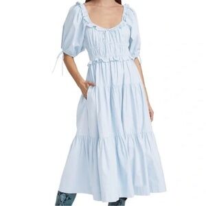 Great condition Scoopneck Short puff sleeves with elasticized cuffs Ruched bodice Side inseam pockets Tiered hem Pullover style 65% polyester/35% cotton Hand wash SIZE & FIT A-line silhouette About 48.75" from shoulder to hem Model measurements: 5'10" tall Model is wearing a US size Small. Box54