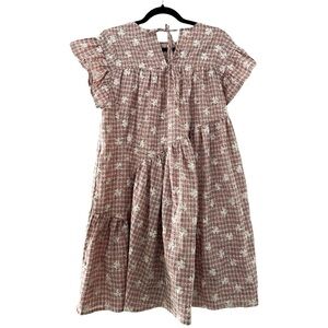 EN SAISON Cotton Ruffle Embroidered Plaid Red Mini Dress Sz M