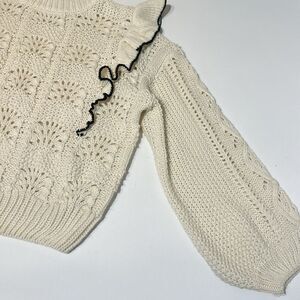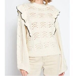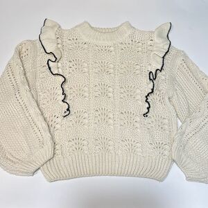 EN SAISON Cream Knit Sweater with Ruffle Accents