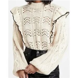 En Saison Morgan crotchet women’s sweater - used in excellent condition! SIZE SMALL - CREAM / BLACK - fabric is soooo soft