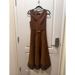 EN SAISON Eloise Faux Suede A-Line Sleeveless Brown Midi Dress Size S NWT
