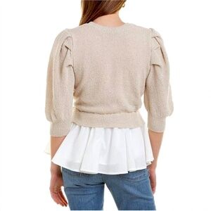 EN SAISON Mixed Media Puff Sleeve Top in Natural