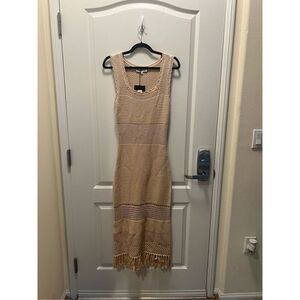 EN SAISON Ruby Crochet Novelty Fringe Midi Dress COLOR: Natural Size S NWT$118