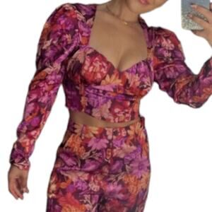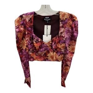 NEW WITH TAGS!!! EN SAISON Women’s Floral Sweetheart neckline Long Sleeve Crop Top Size SMALL
