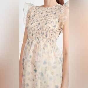 EN Saison La Raque Floral Smocked Midi Dress Beige Women Small Cottagecore Boho