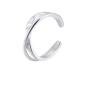 ENA 925 Sterling Silver hammered Cris Cross Shaped Adjustable Ring