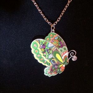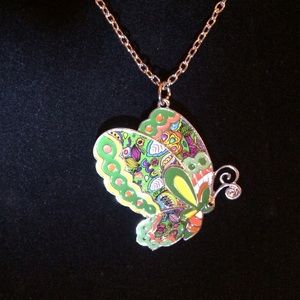 Maxi Statement Enamel Jewelry Butterfly Necklace and Pendant. New Fashion. Green. Necklace is silver. Backing and Outline silver.