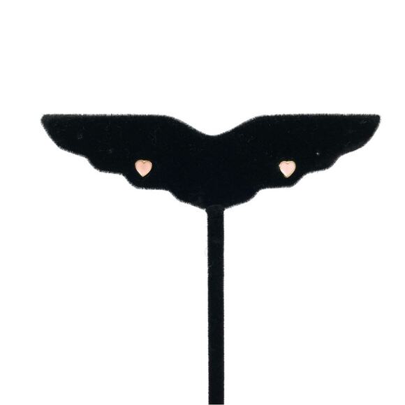 Enamel Heart Dainty Studs in a light pink and gold. Very thin profile and small.