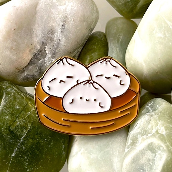 Enamel Pin featuring steamed buns. Cute addition to your pin collection. Brand new, never used.