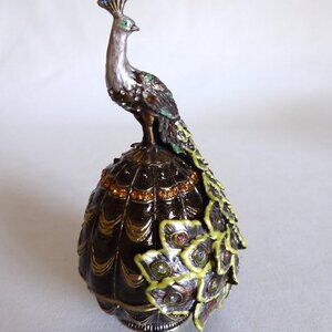 ENAMELED BEJEWELED PEACOCK ON EGG TRINKET BOX (NEW WITHOUT BOX)