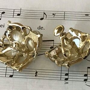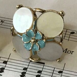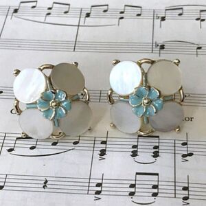 Vintage Enamel Flower and Mother of Pearl Screw Back Earrings Gold tone Measures: 1.75″ x 1.75″ Hangs in a diamond shape