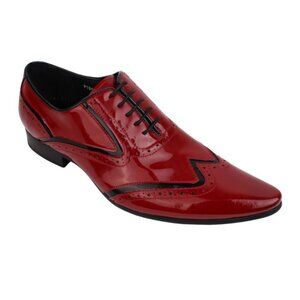 Rock these cool ENCORE by FIESSO ombré red & black patent leather wingtips lace up oxfords with genuine leather patent leather uppers and leather lining, padded insole, man made sole. Ombre red is darker shade at the toe; black patent leather outlining.