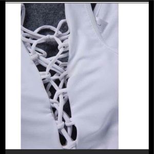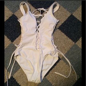 Never worn, super cute. Reposh. Bought this and loved it but was always too pale to wear a white bathing suit. Size L but fits like a S/M.